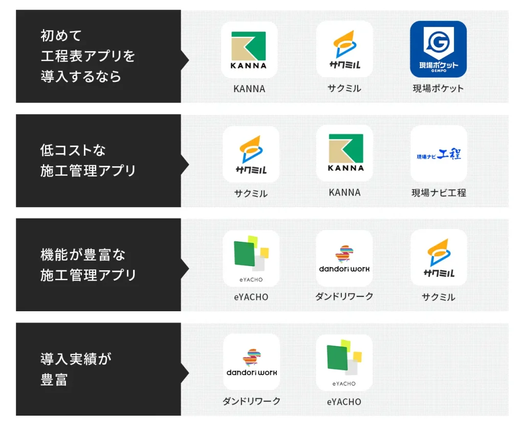 - おすすめの工程表アプリ・ソフトを知りたい